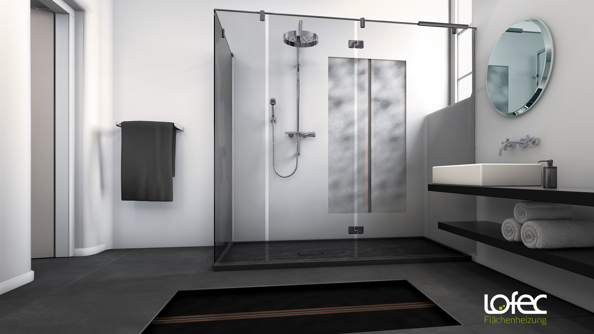 Mit der Lofec Flächenheizung wird auch Ihr Badezimmer eine Wohlfühloase. Genießen Sie die angenehme Wärme in den Wänden, Böden oder sogar in Sitzflächen und heizen Sie Ihr Bad energiesparend ohne Vorlaufzeit. Nutzen Sie die überzeugenden Vorteile der Lofec Flächenheizung. Für Sicherheit sorgen im Nassbereich eine zusätzliche elektrische Isolierung der Kontaktstellen. Die spezielle Variante der Lofec Flächenheizung für den Nassbereich ist mit einer PET-Folie elektrisch isoliert und daher auch in den Schutzbereichen 0,1 und 2 (Innenbereich Badewanne/Dusche) einsetzbar.